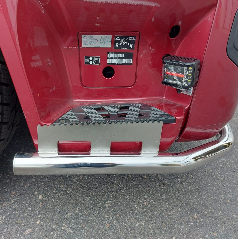 Fits leaf-sprung Actros 2.3 m models. For air-sprung versions, a similar front bumper bar is also available