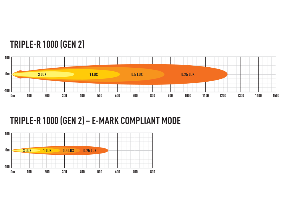 ncorporating an arrangement of high efficiency, premium ‘bin’ LEDs at a carefully selected 5000K colour temperature, with 80CRI for high levels of sharpness and clarity, the Triple-R Elite products represent our most powerful driving lights. The electronics and optic design work in combination to deliver incredible distance illumination, yet still with enviable left/right spread. The comparatively low up/down spread of light emitted from the Elite lights ensures their suitability when roof mounting, avoiding reflective glare off the vehicle bonnet.