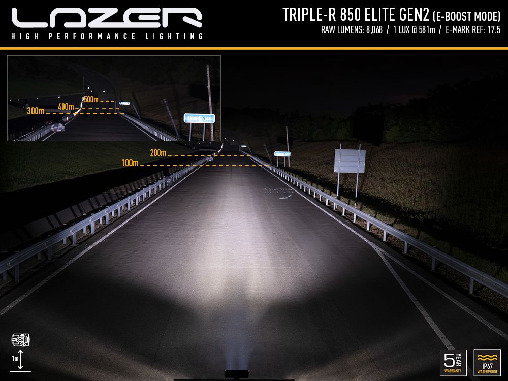 UNECE Reg 112 Class B Driving Light, approved for on-road high beam (E-Boost technology)