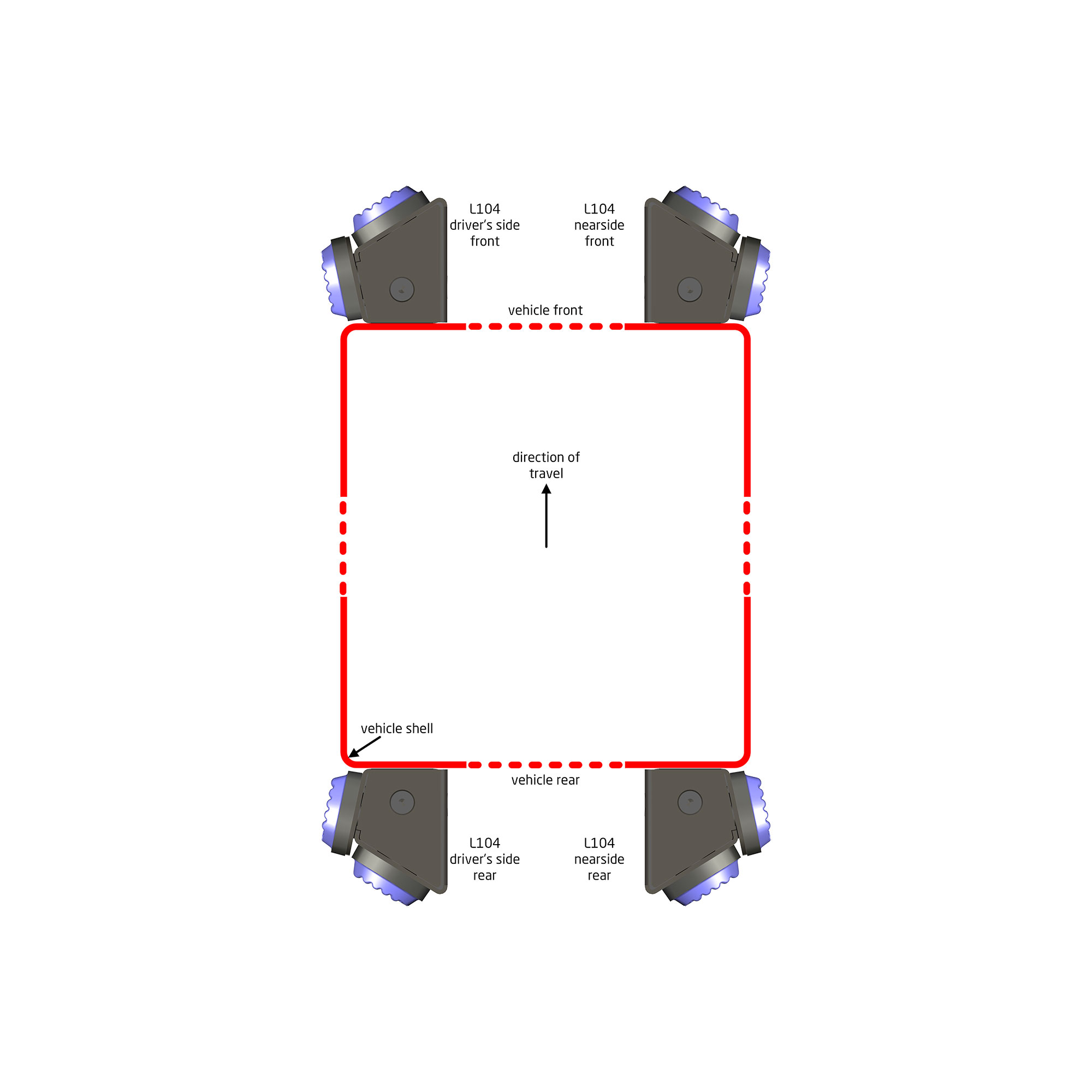 L104 on HT-hyväksytty valaisin hälytysajoneuvoihin, jossa kahdella valaisinyksiköllä (yhteensä neljä valaisinta) täytetään HT-hyväksynnän mukainen 270-asteen näkyvyysvaatimus. Valaisimina käytetään luotettaviksi todettuja L52-valaisimia modifioiduilla linsseillä.