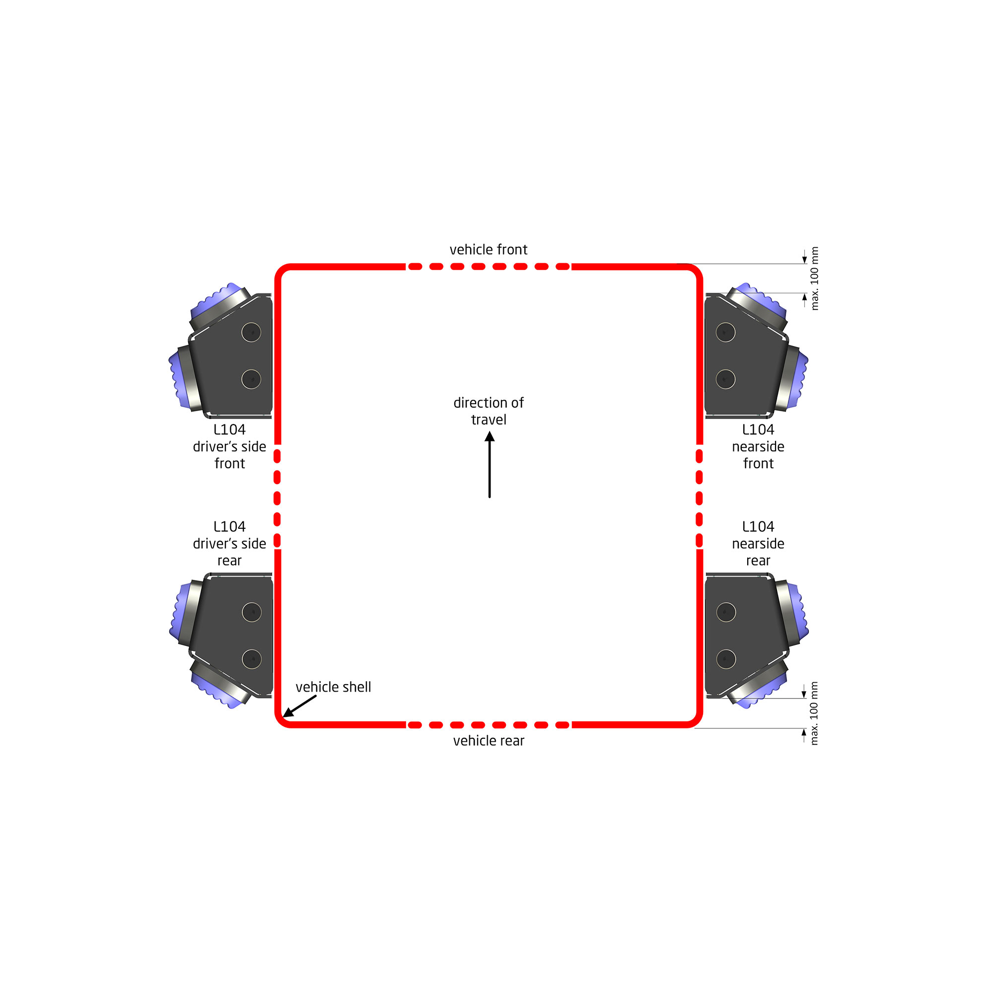 L104 on HT-hyväksytty valaisin hälytysajoneuvoihin, joka koostuu kahdesta valaisinyksiköstä (yhteensä neljä valaisinta) ja täyttää HT-hyväksynnän mukaisen 270-asteen näkyvyysvaatimuksen. Valaisimina toimivat luotettavaksi todetut L52-valaisimet, joissa on modifioidut linssit.