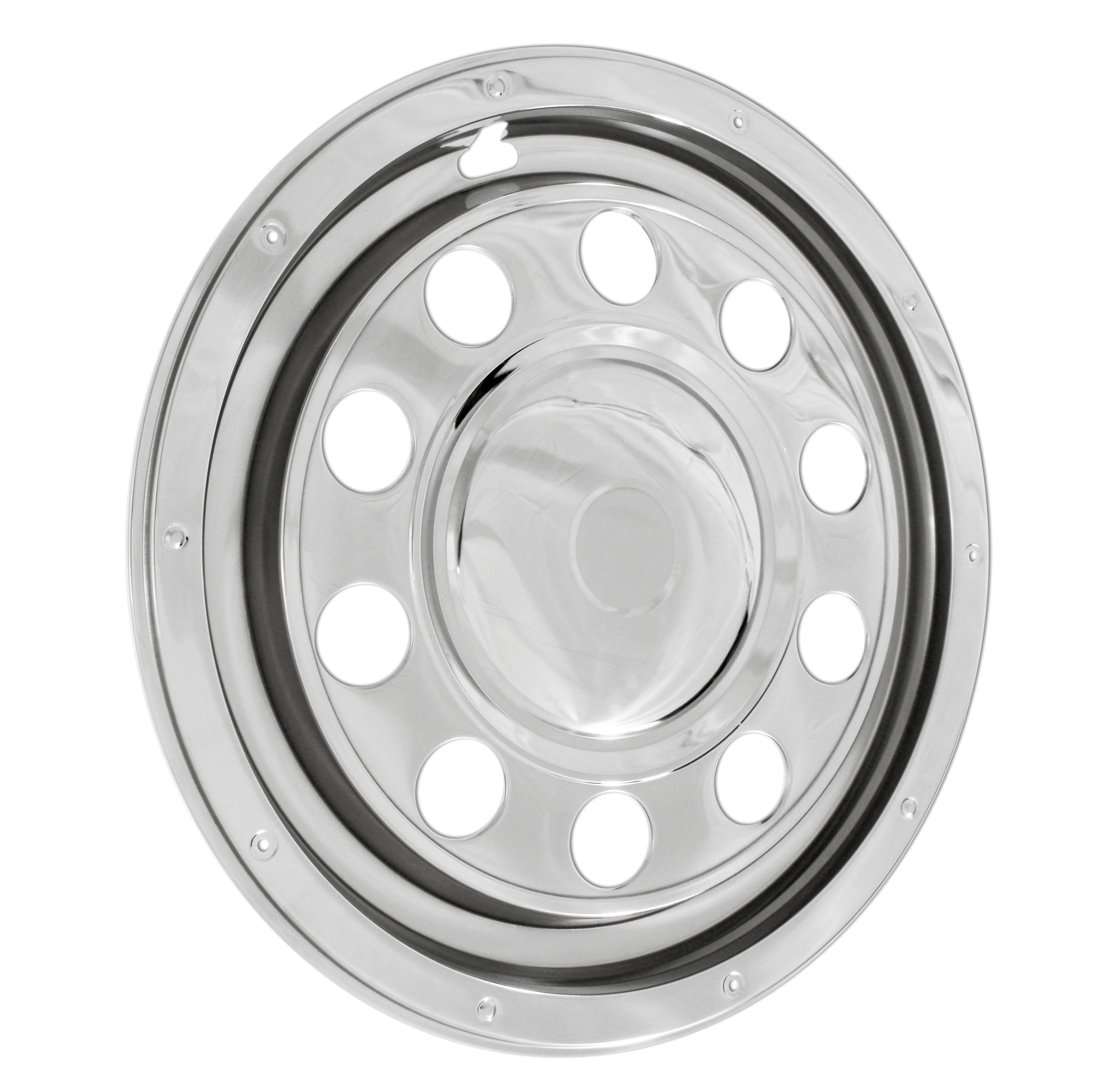 Ruostumattomasta teräksestä valmistettu koristekapselipari umpikeskiöllä 22,5” vanteille.