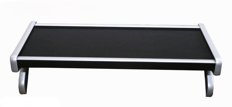 Musta pöytä alumiinin värisillä reunoilla.