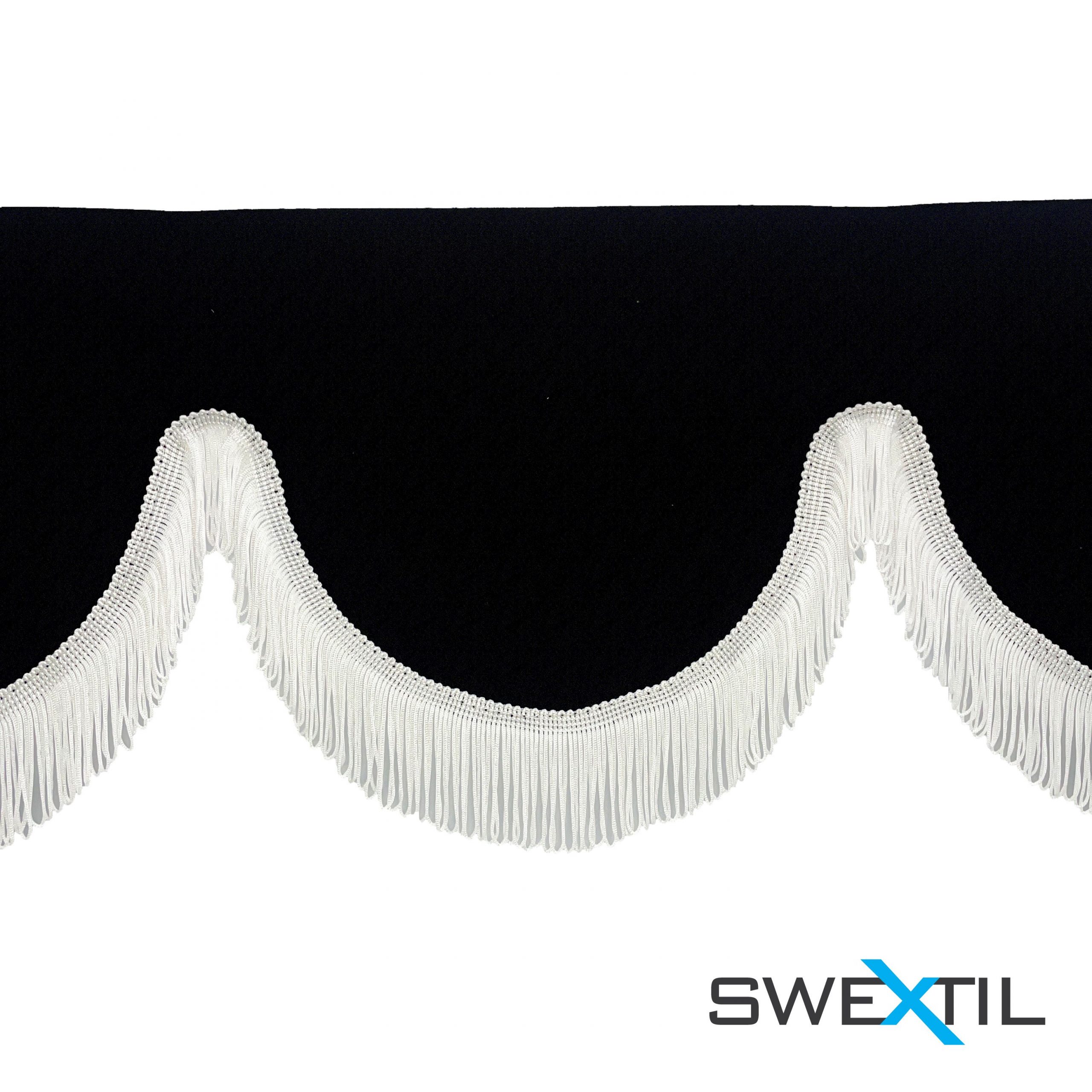 Kaareva verhokappa hapsuilla kuorma-auton tuulilasiin