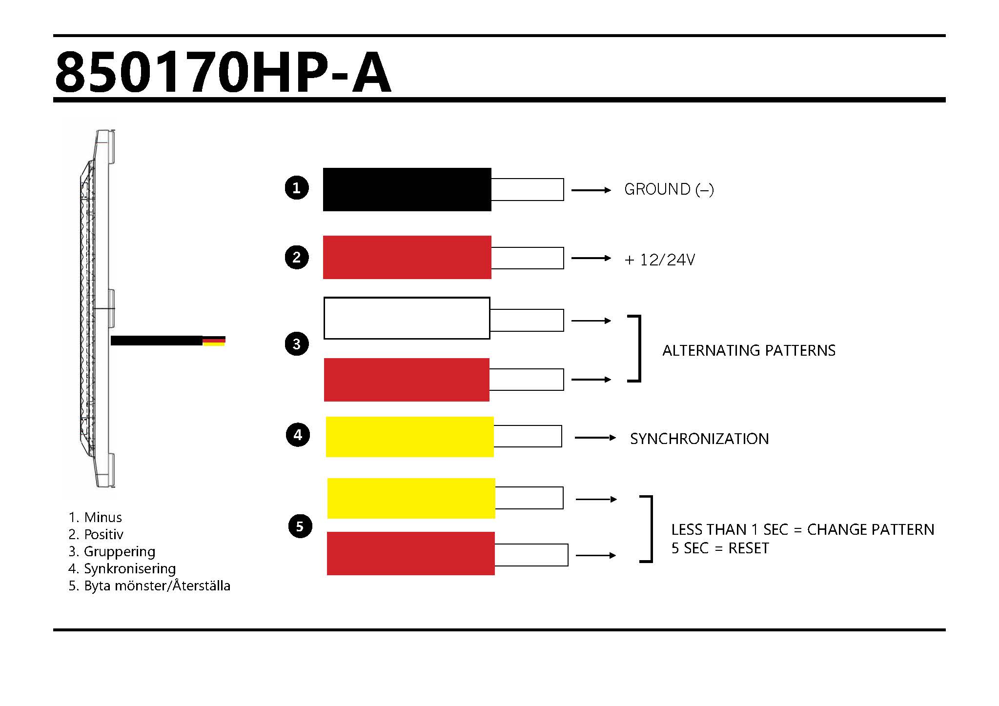 Laadukas Strandsin valmistama tasovilkku keltaisella valolla. Vilkussa on 20 erilaista välähdyskuvioita. Samanlaiset vilkut voidaan synkronoida keskenään samaan tahtiin tai vuorotellen.
